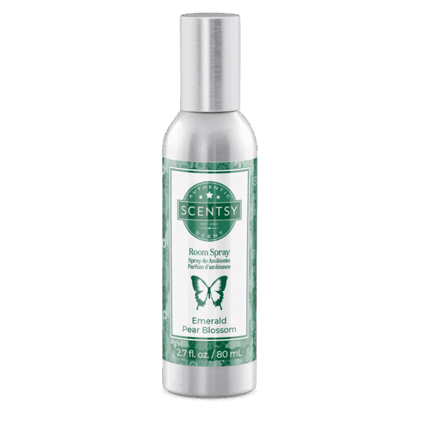 Emerald Pear Blossom Scentsy Room Spray-Juicy emerald pear shimmers over white cranberry and amber blossom.