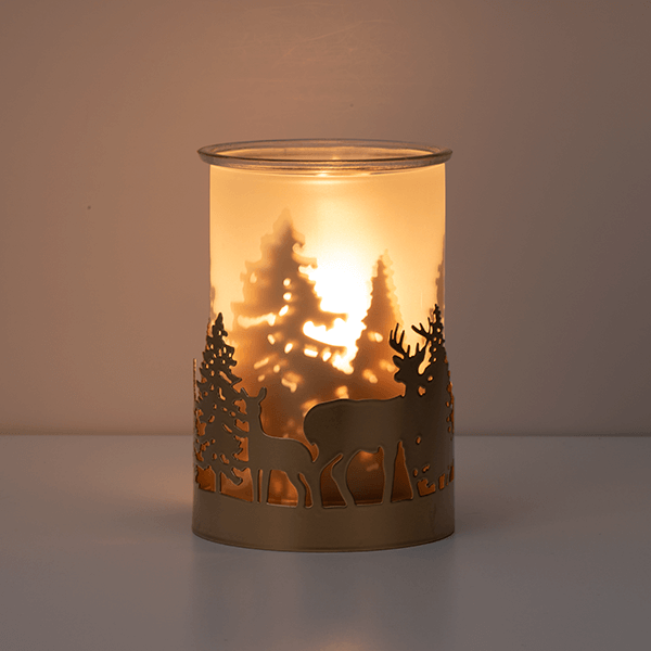 When you flip the switch to turn the warmer on you’ll be in aww how the light shines behind the forrest trees while it also is casting shadows on the warmers’ frosted glass – the light glows just enough, illuminating a family of deer.
