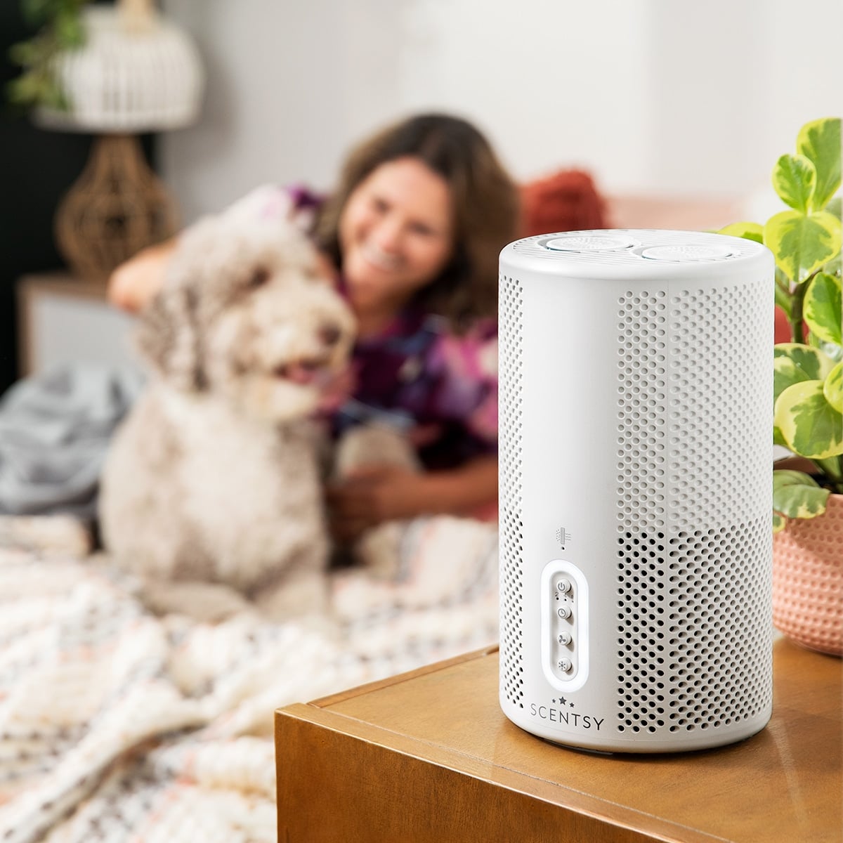 We’re so excited to announce this new scentsy fragrance system to you as we believe that the air purifier will be a great addition to your home – especially those with pets! During this pandemic, we now realize more than ever the importance for clean air in our homes. It’s not just our house, it’s a place where we gather with family including our four-legged family members.