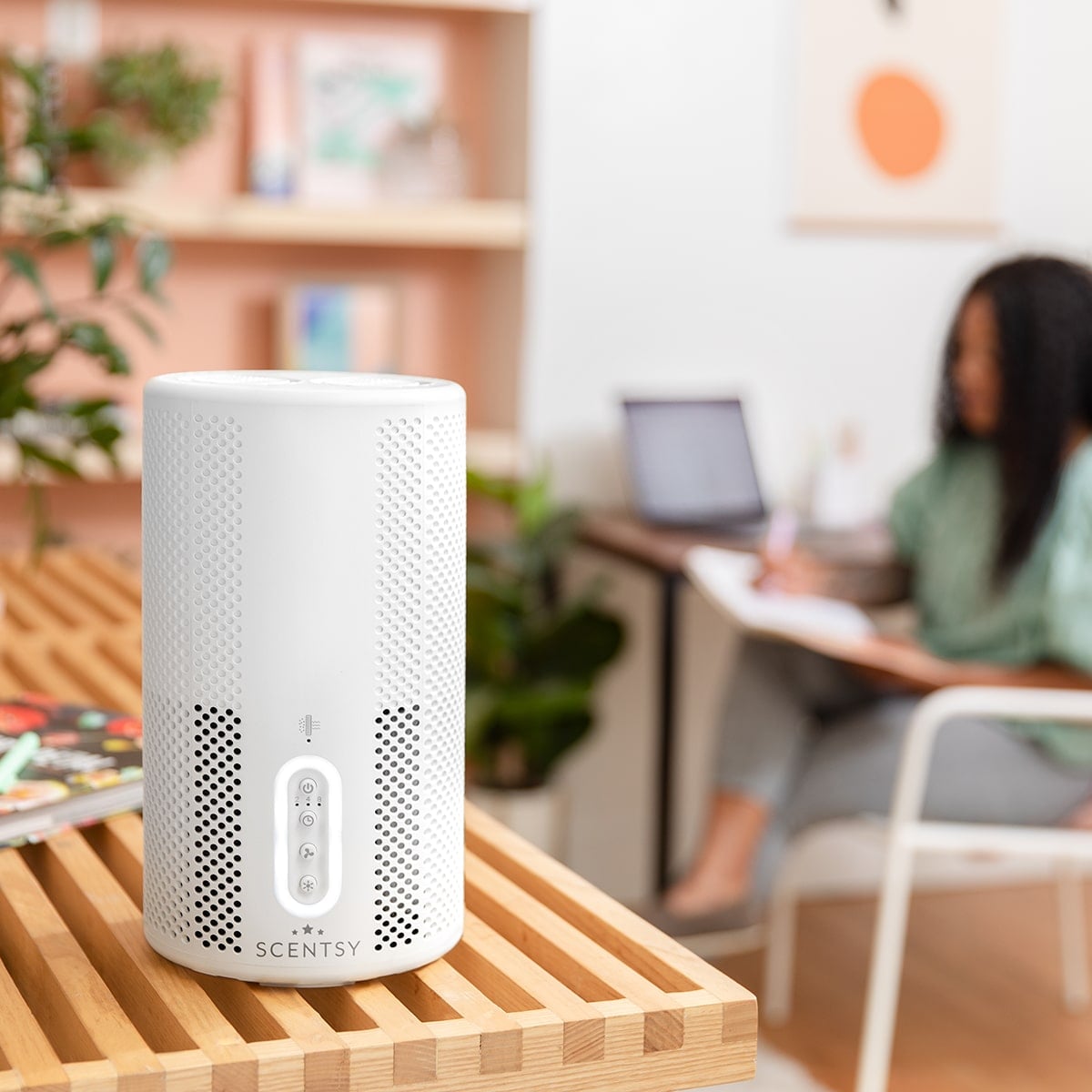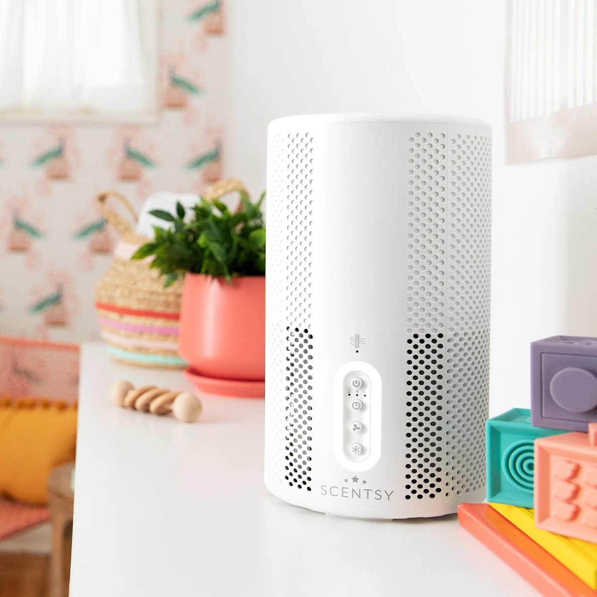 The Scentsy Air Purifier quietly cleans the air around us… and wait for it … also disperses our signature Scentsy fragrance, so not only will your air be fresh and clean, but it will smell amazing too!