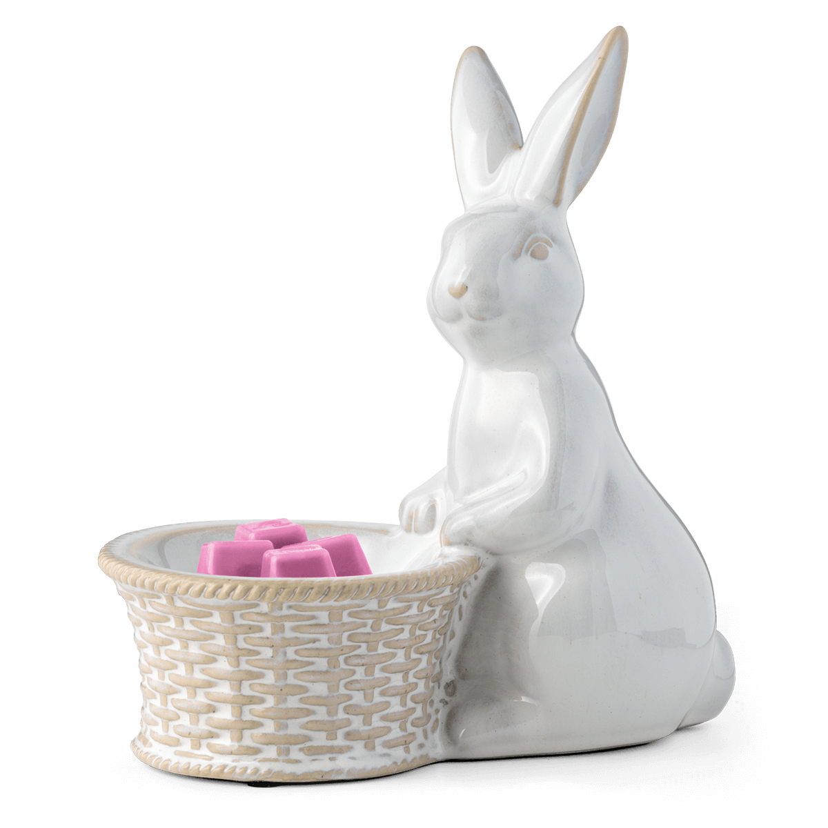 A Scentsy Bunny warmer with light-hearted simplicity — this playfully posed bunny eagerly waits for Easter goodies.