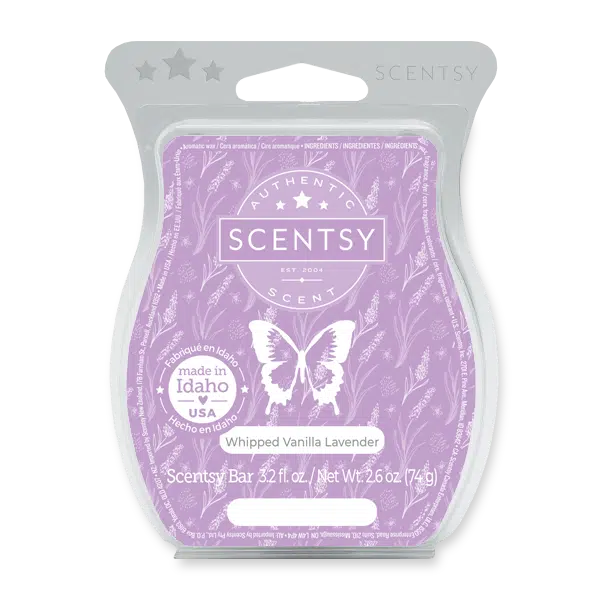 A bouquet of violet and magnolia petals brightened by a spritz of sparkling citrus. - Whipped Vanilla Lavender Scentsy Bar: